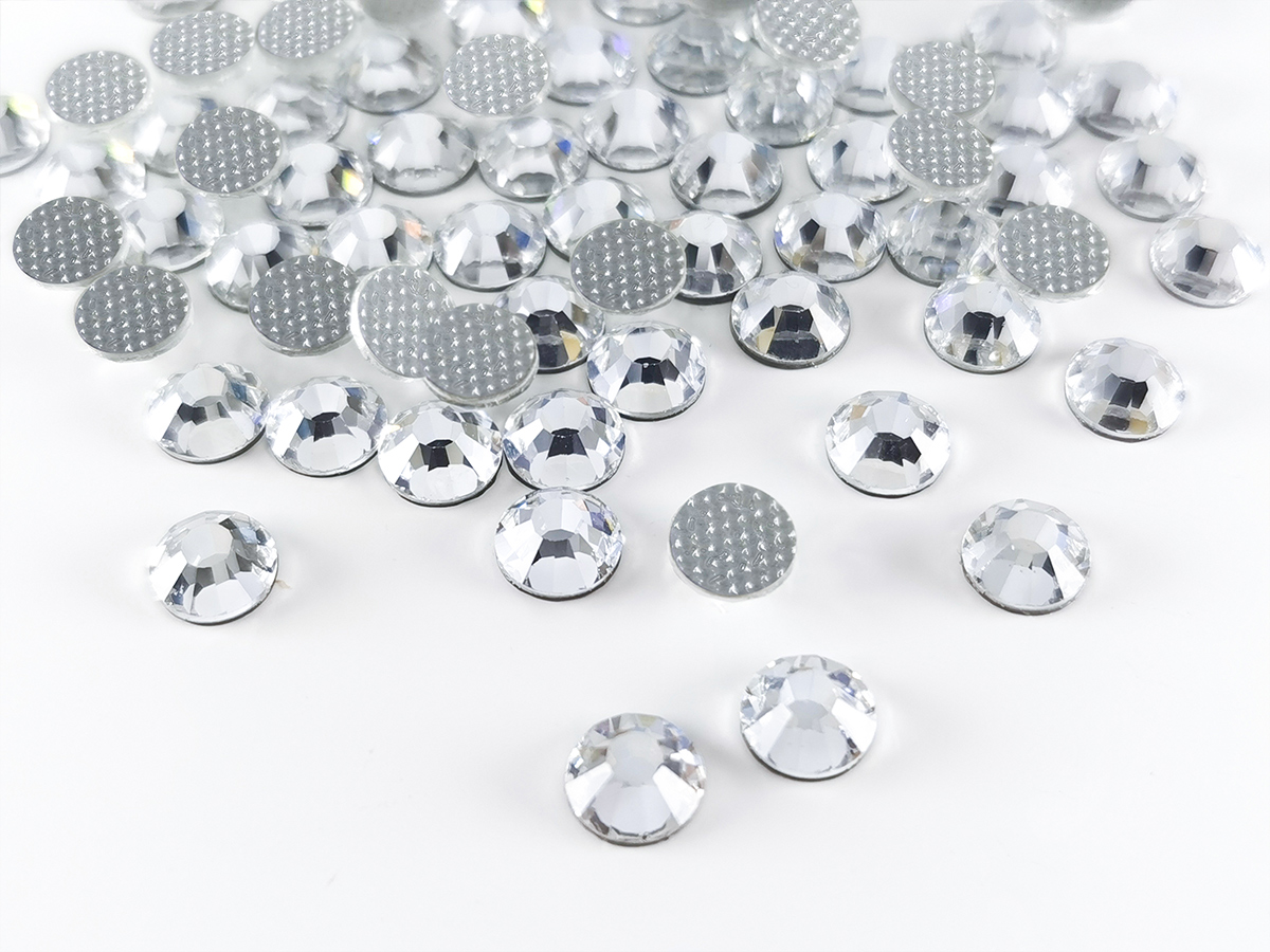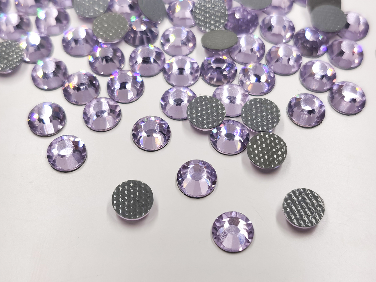 Hotfix Rhinestones by Crystalunite are made by applying a protective layer and a special low-temperature adhesive to a highly reflective foil backing, resulting in stronger adhesion and extended durability.