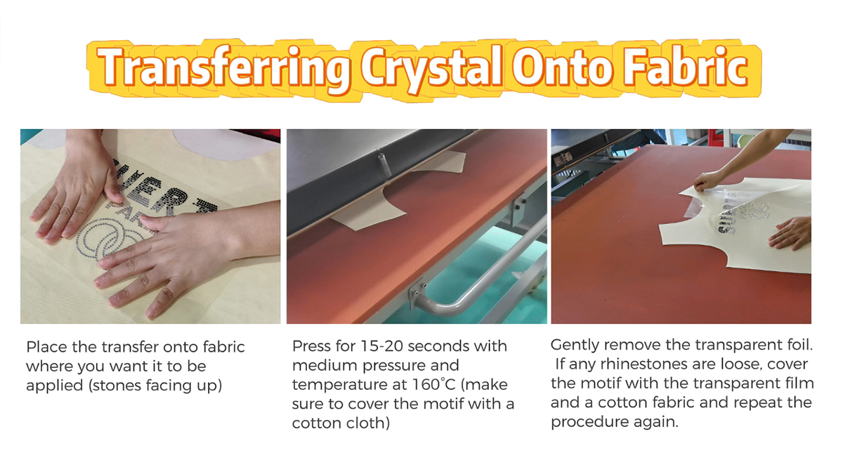 Rhinestone Transfers ☜ are pre-arranged patches made by fixing loose hotfix rhinestones into specific designs on an adhesive carrier film. Custom Rhinestone Transfers turn your creative designs into ready-to-apply rhinestone patterns, professionally arranged by specialized factories.