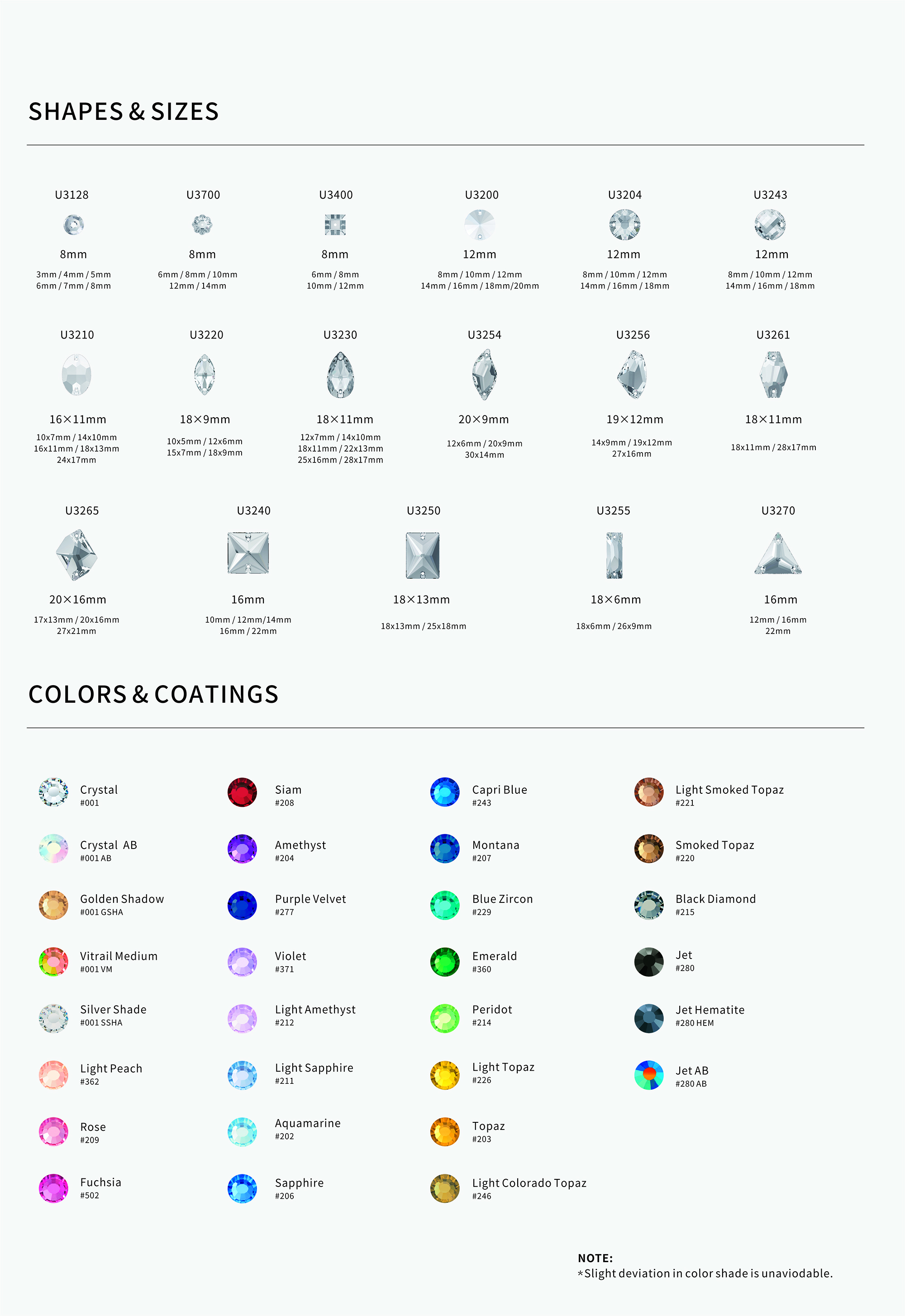 Brand Name Crystal Unite Article No. Available Models Origin Place China Size Available sizes Type Sew on stones Style Flat back Shape Round Technics Hand Sewing,