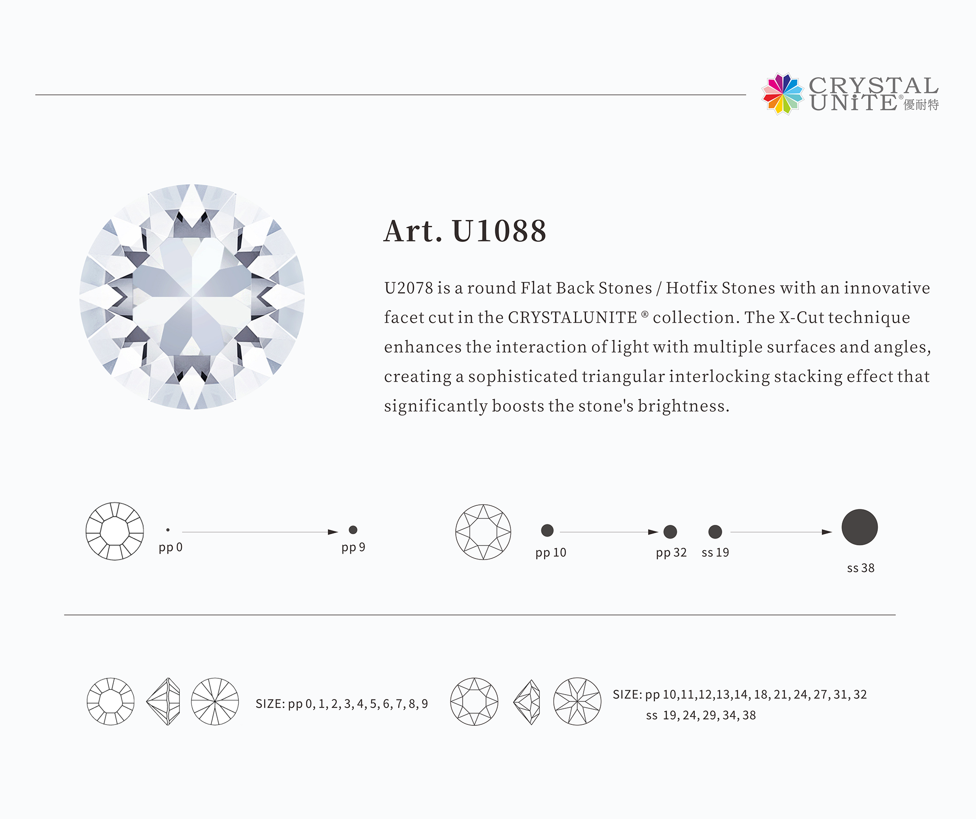 Brand Name Crystal Unite Article No. U1088 Origin Place Made in China Size PP0-SS38