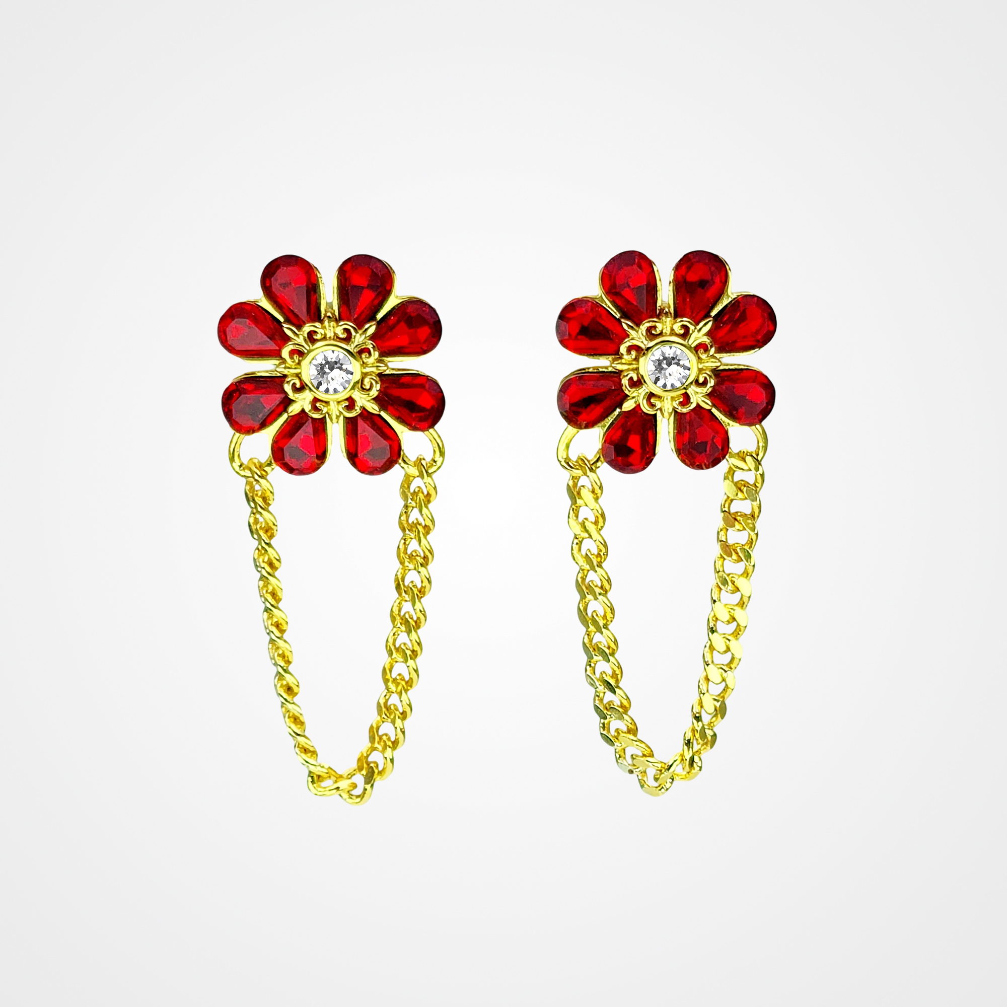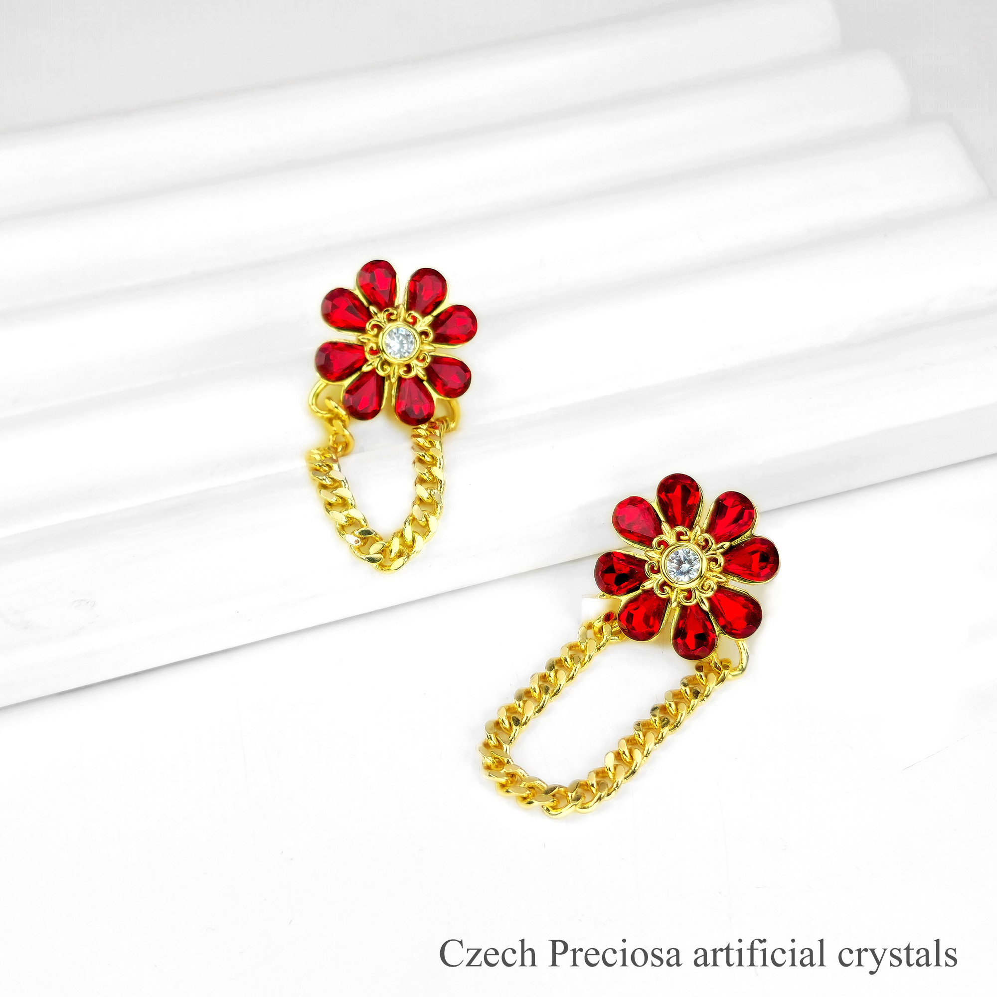 Blazing Red Bloom Earring Item Code PS.ECM145 Material Brass Crystal Preciosa artificial crystals Plating 18K Gold Techniques Bezel setting, adhesive bonding Length 4.2 cm Width 1.9 cm