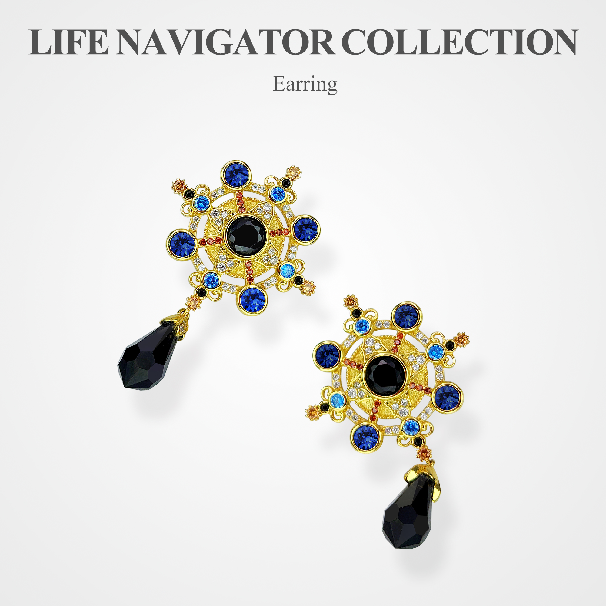 Life Navigator Earring Item Code PS.ECM139 Material Brass Crystal Austrian artificial crystals Plating 18K Gold / Antique Gold Techniques Claw setting, adhesive bonding Length 4.7 cm Width 3 cm