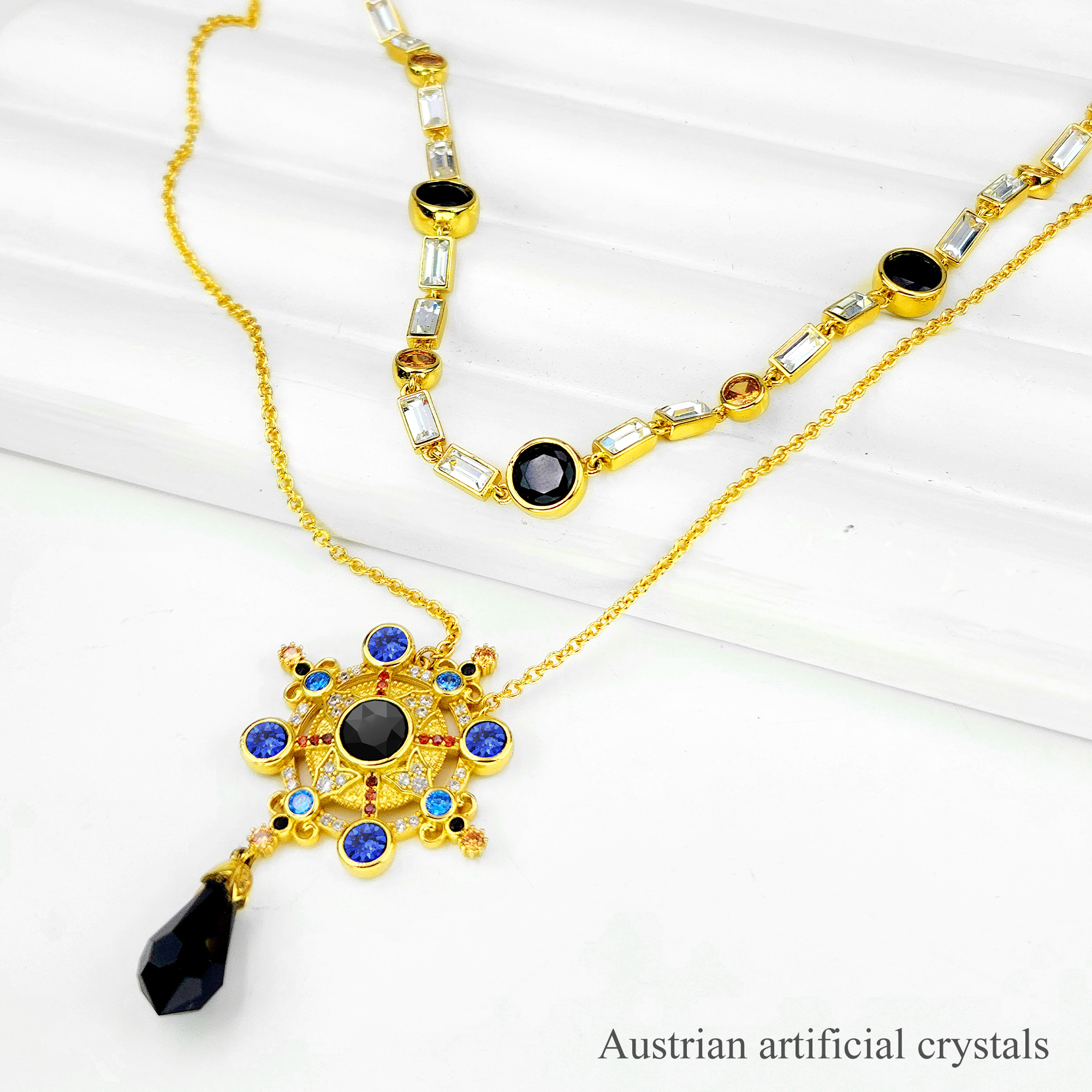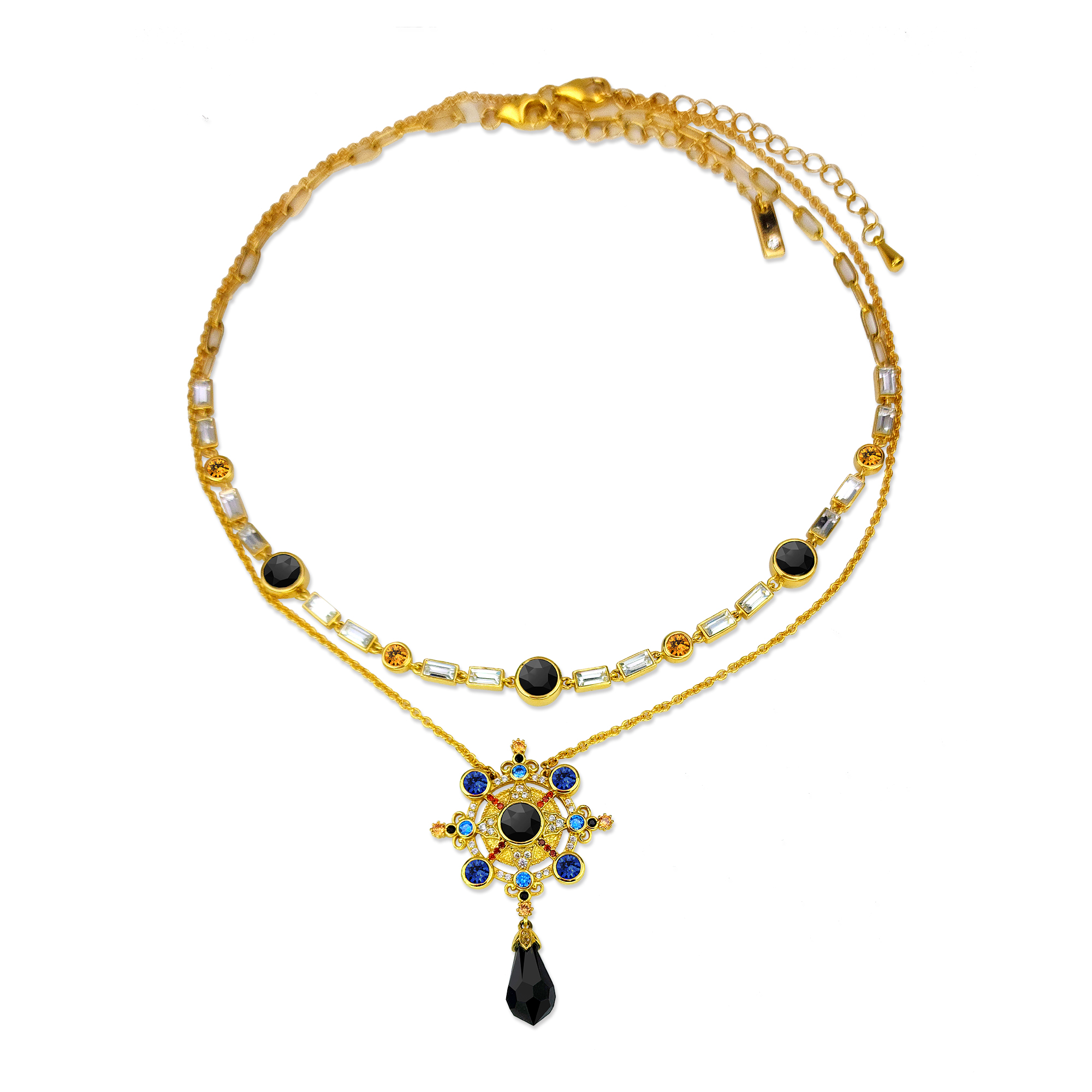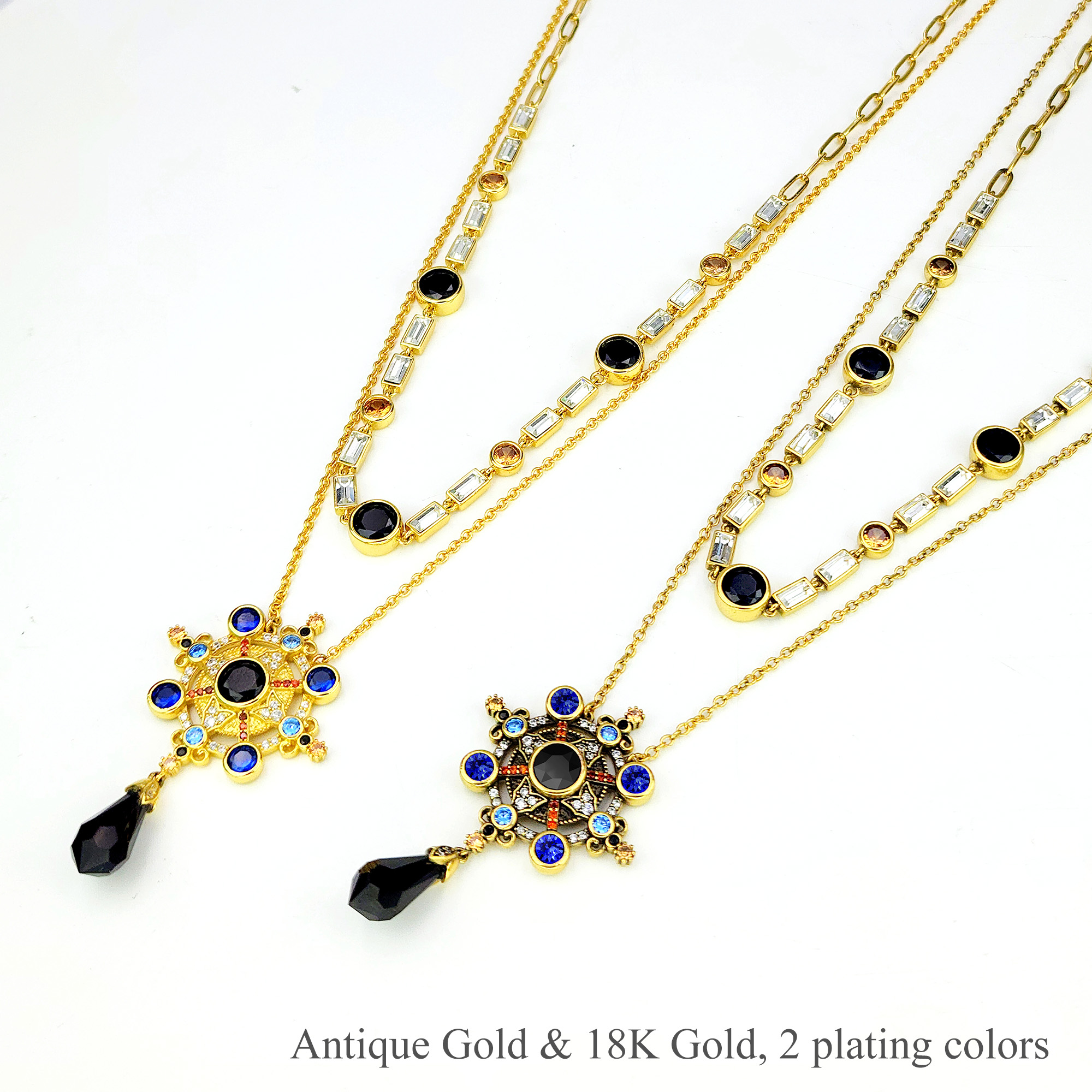 Life Navigator Necklace Item Code PS.NCM073 Material Brass Crystal Austrian artificial crystals Plating 18K Gold / Antique Gold Techniques Claw setting, adhesive bonding Short Version Chain Length 38 cm Extender 5 cm Long Version Chain Length 40 cm Extender 7 cm