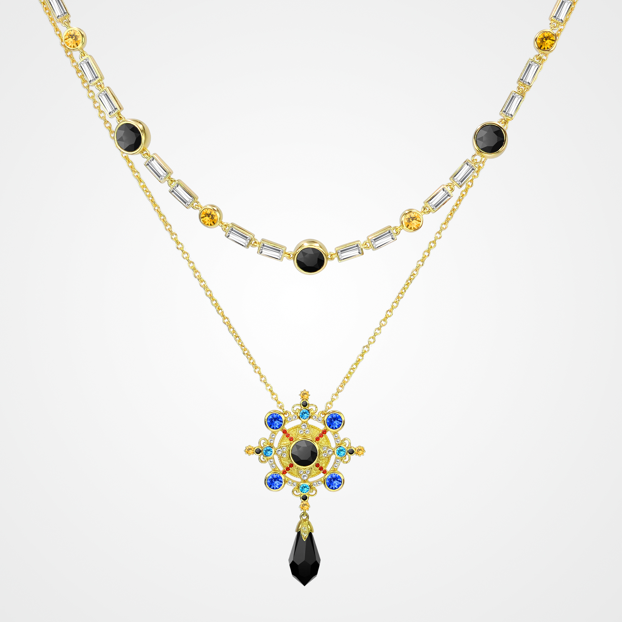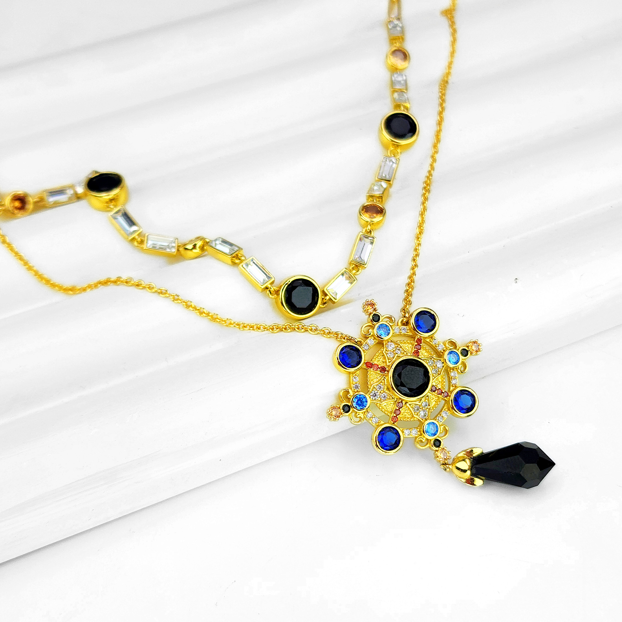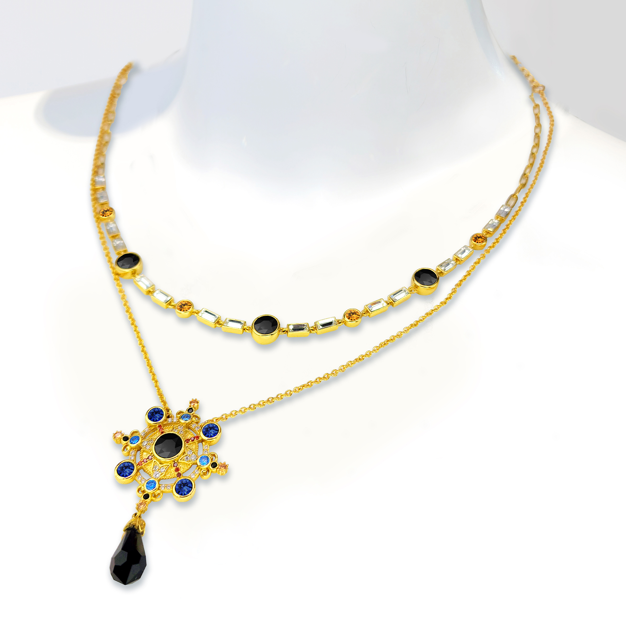 Life Navigator Necklace Item Code PS.NCM073 Material Brass Crystal Austrian artificial crystals Plating 18K Gold / Antique Gold Techniques Claw setting, adhesive bonding Short Version Chain Length 38 cm Extender 5 cm Long Version Chain Length 40 cm Extender 7 cm