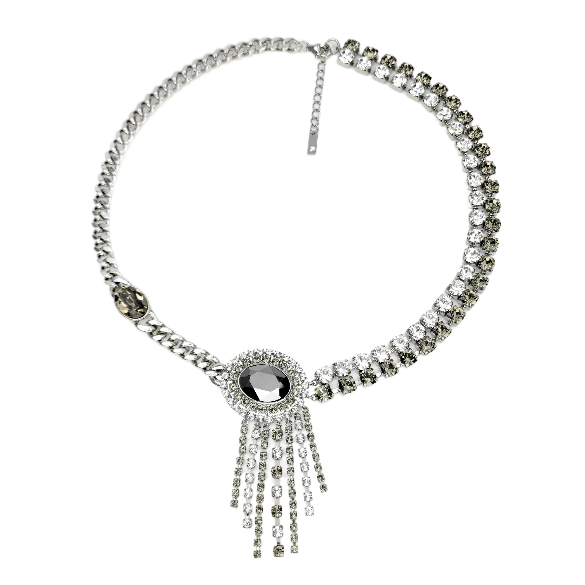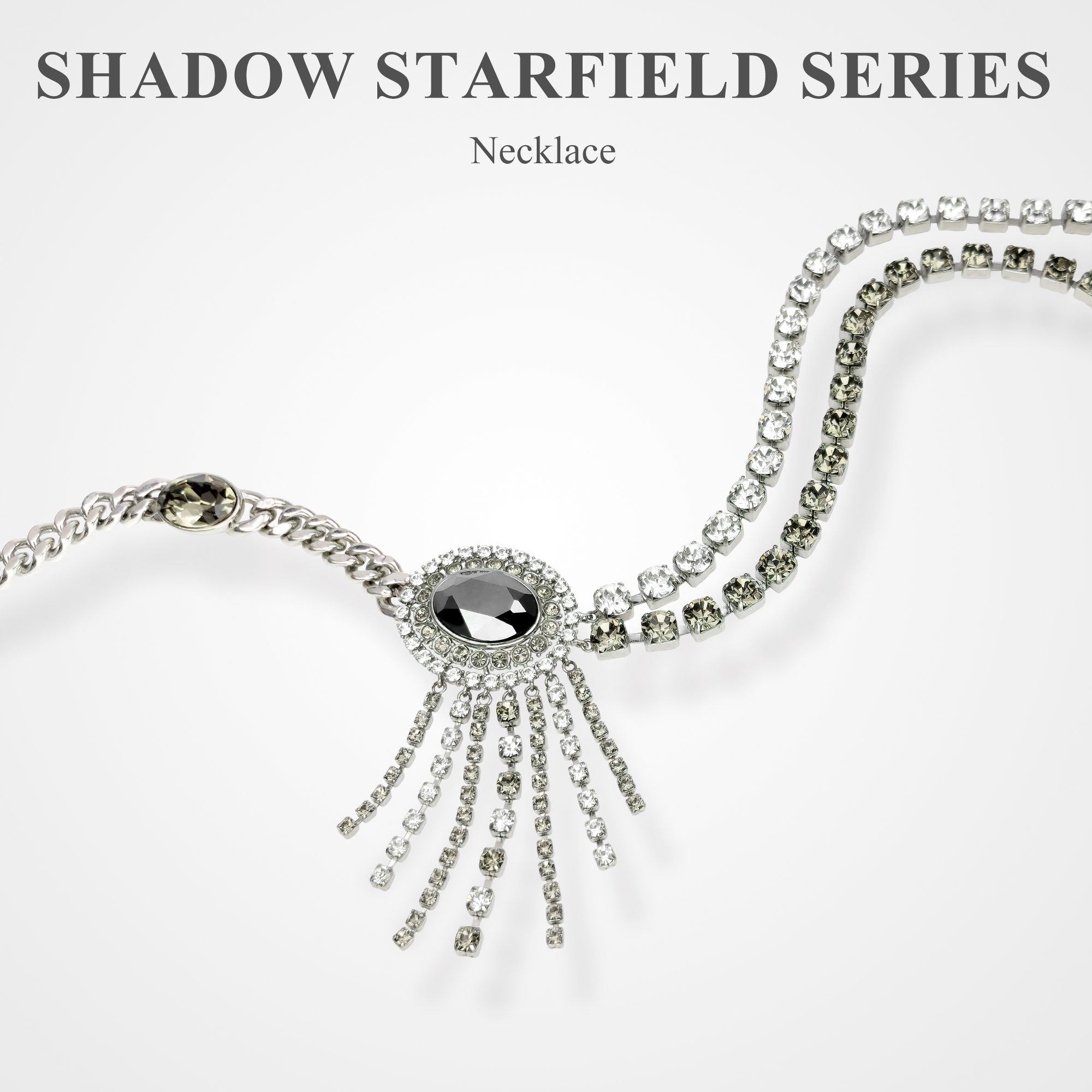Shadow Starfield Necklace Item Code PS.NCM103 Material Brass Crystal Preciosa artificial crystals Plating Rhodium Techniques Claw-setting & adhesive bonding Chain Length 47.5 cm Extender 5 cm