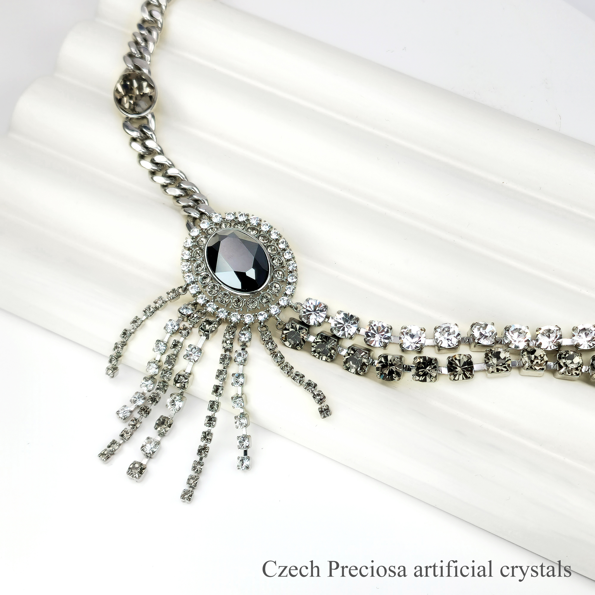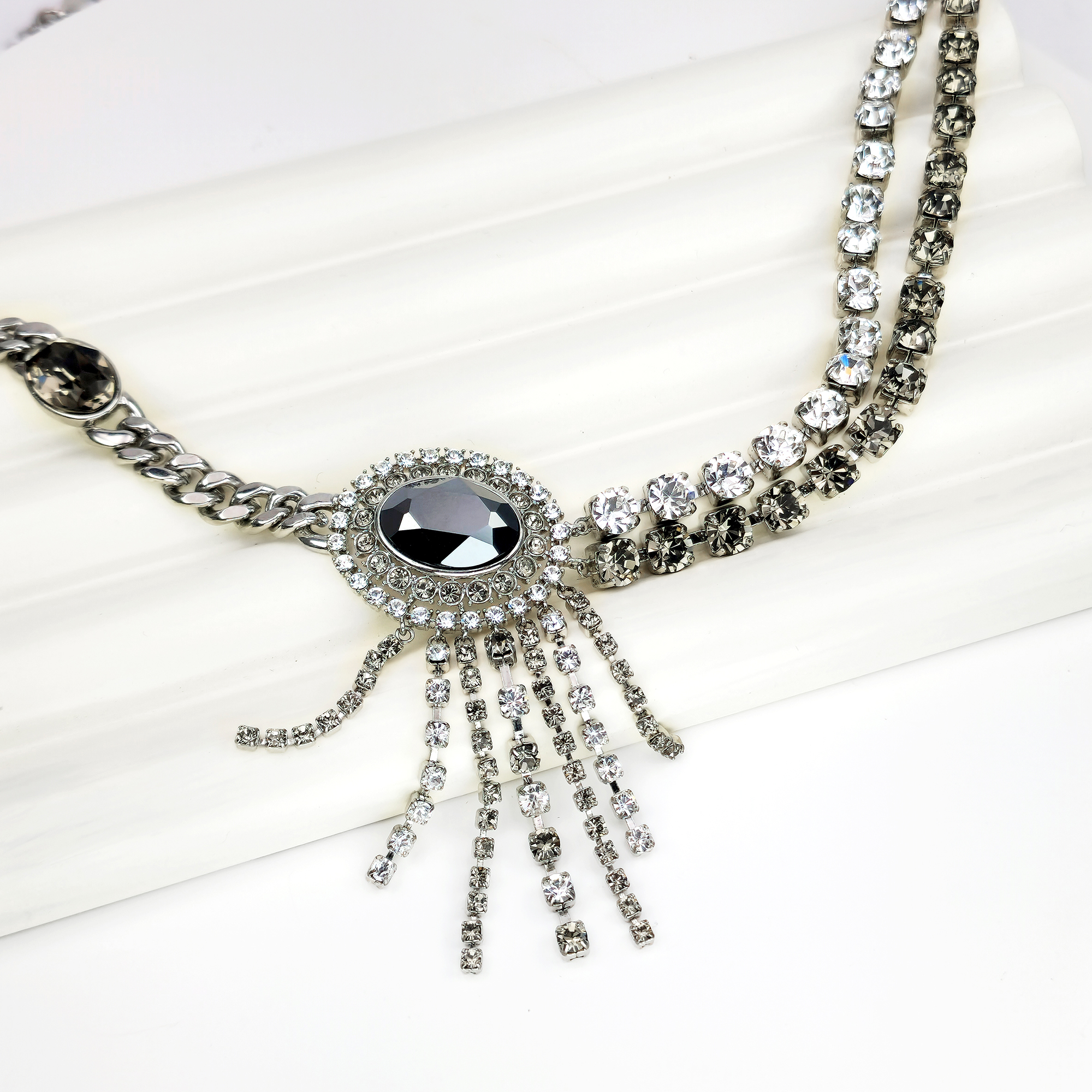 A timeless monochrome palette delivers instant sophistication. The smoky gray center stone radiates understated luxury, while asymmetric chain designs and dynamic claw-set fringe combine tradition with rebellious edge - simultaneously classic and unconventional.Wholesale/Customization | Premium Quality