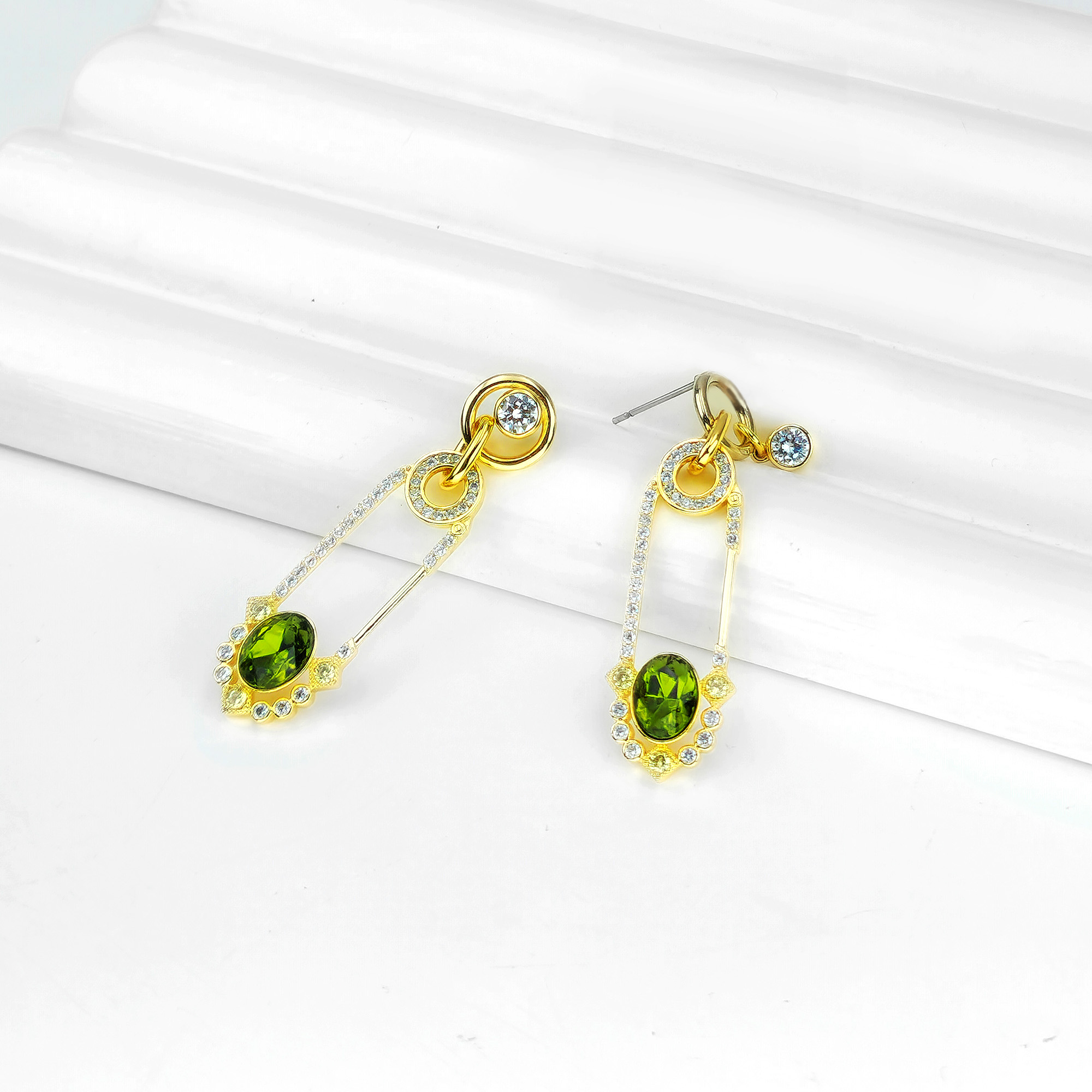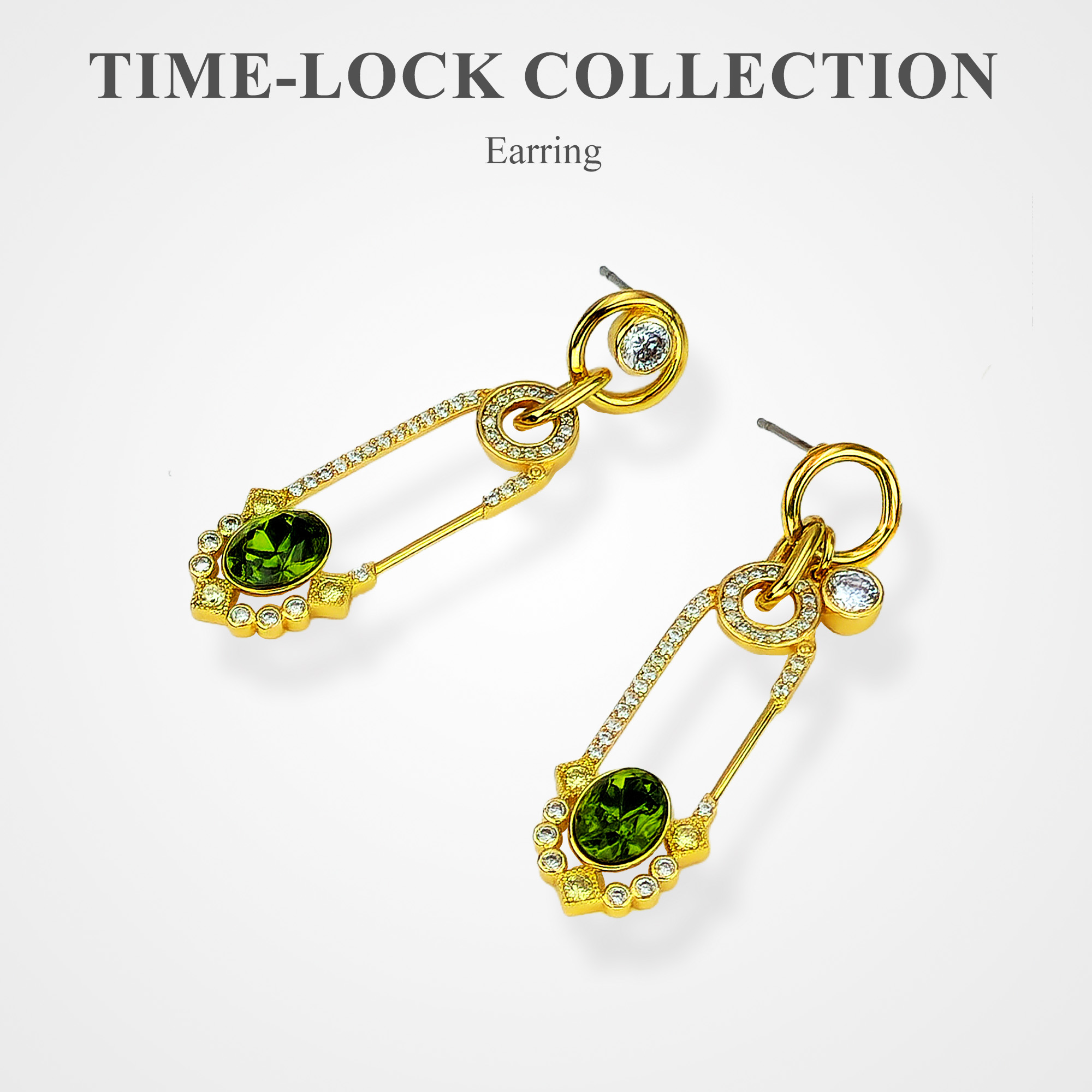 Time-Lock Earring Item Code PS.ECM152 Material Brass Crystal Austrian artificial crystals Plating 18K Gold Techniques Claw-setting & adhesive bonding Length 4.7 cm Width 1.3 cm