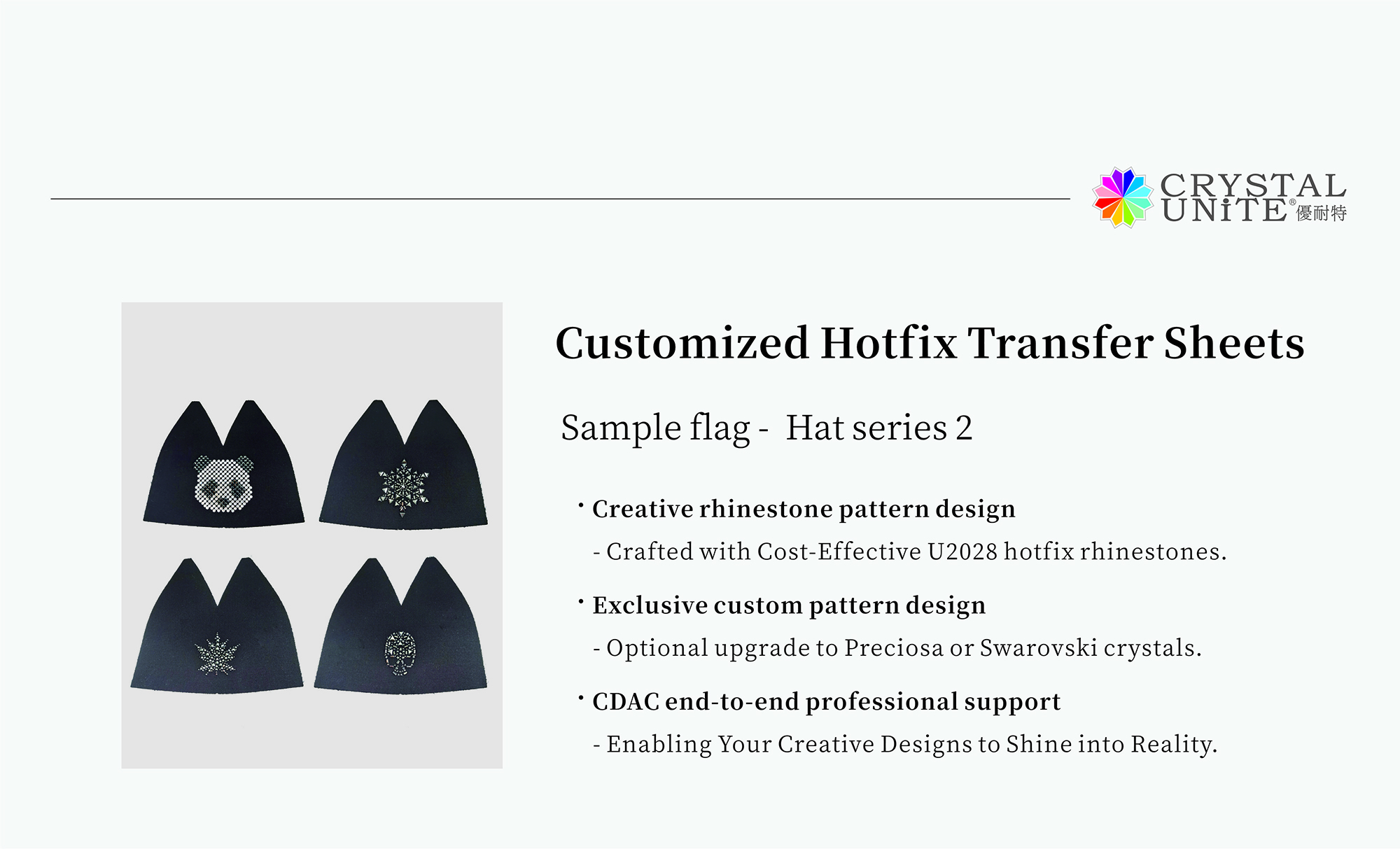 The process of assembling loose hotfix rhinestones into creative patterns and heat-transferring them onto fabrics may present technical hurdles. Our dedicated R&D and manufacturing team – the Crystal Design & Application Center (CDAC) delivers end-to-end solutions spanning design, material allocation, prototyping to mass production. We have successfully served multiple international high-end fashion brands.