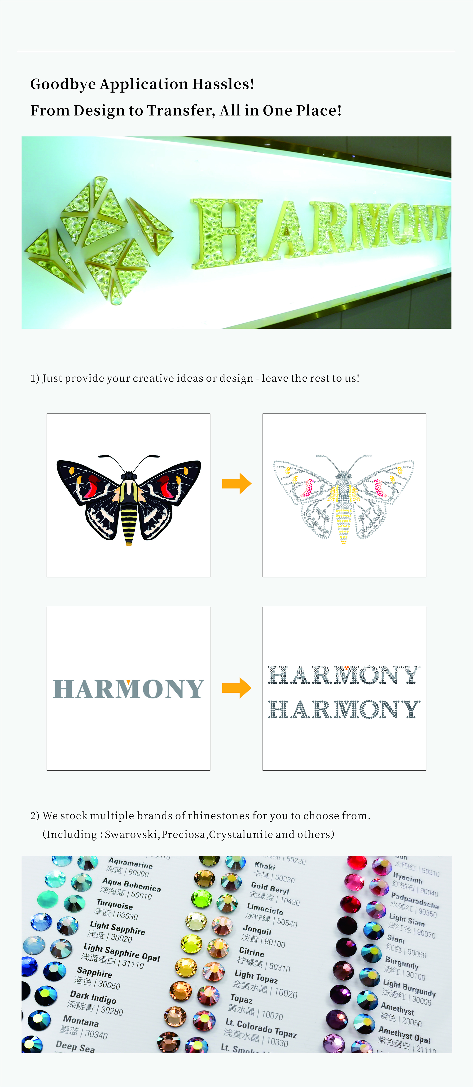 Crystal Design & Application Center (CDAC) is the dedicated R&D and manufacturing team exclusively configured by Harmony Fashion Jewelry Co., Ltd. for its brand CRYSTALUNITE®.  CDAC specializes in providing comprehensive one-stop solutions for all crystal application needs.