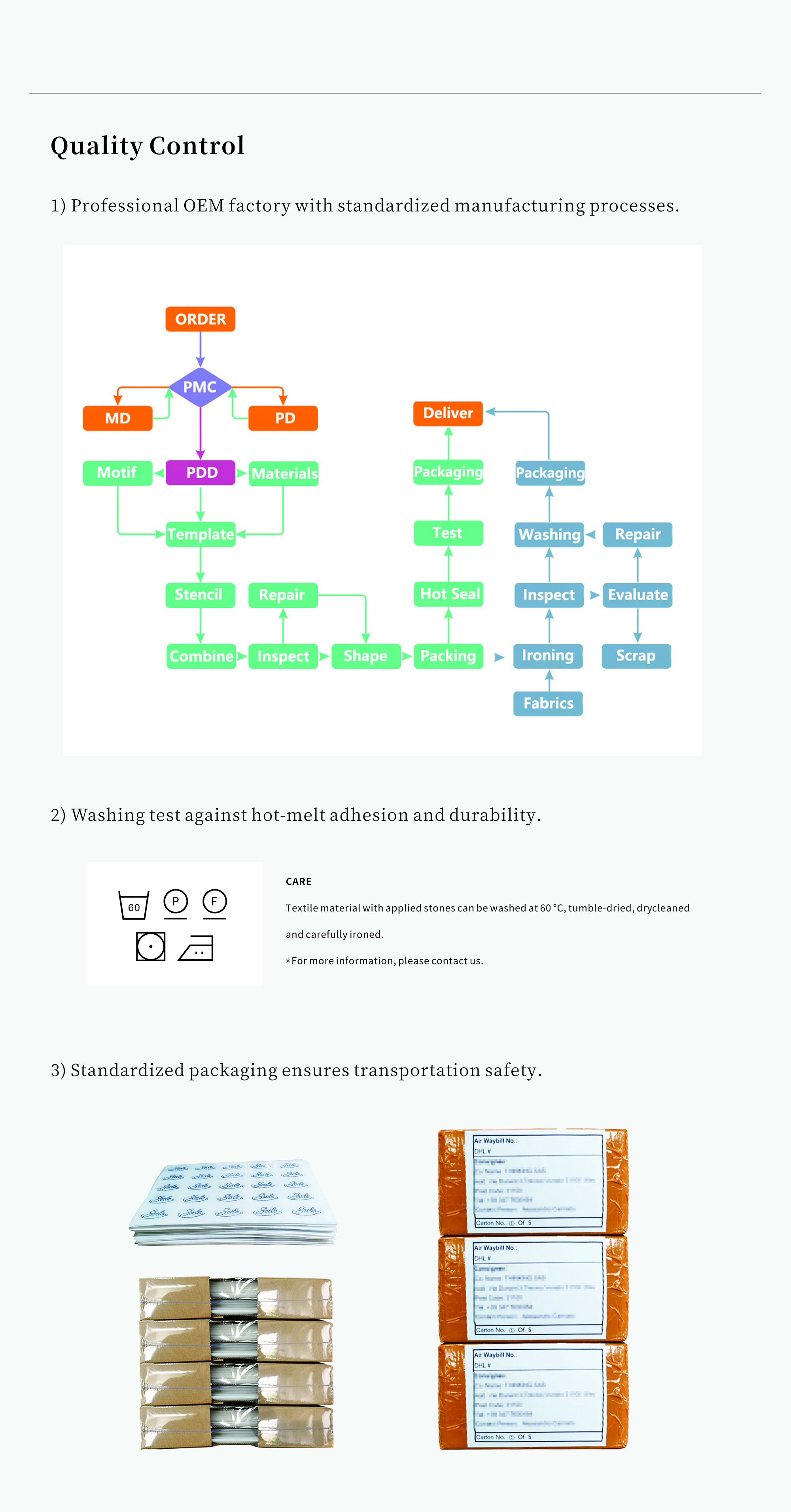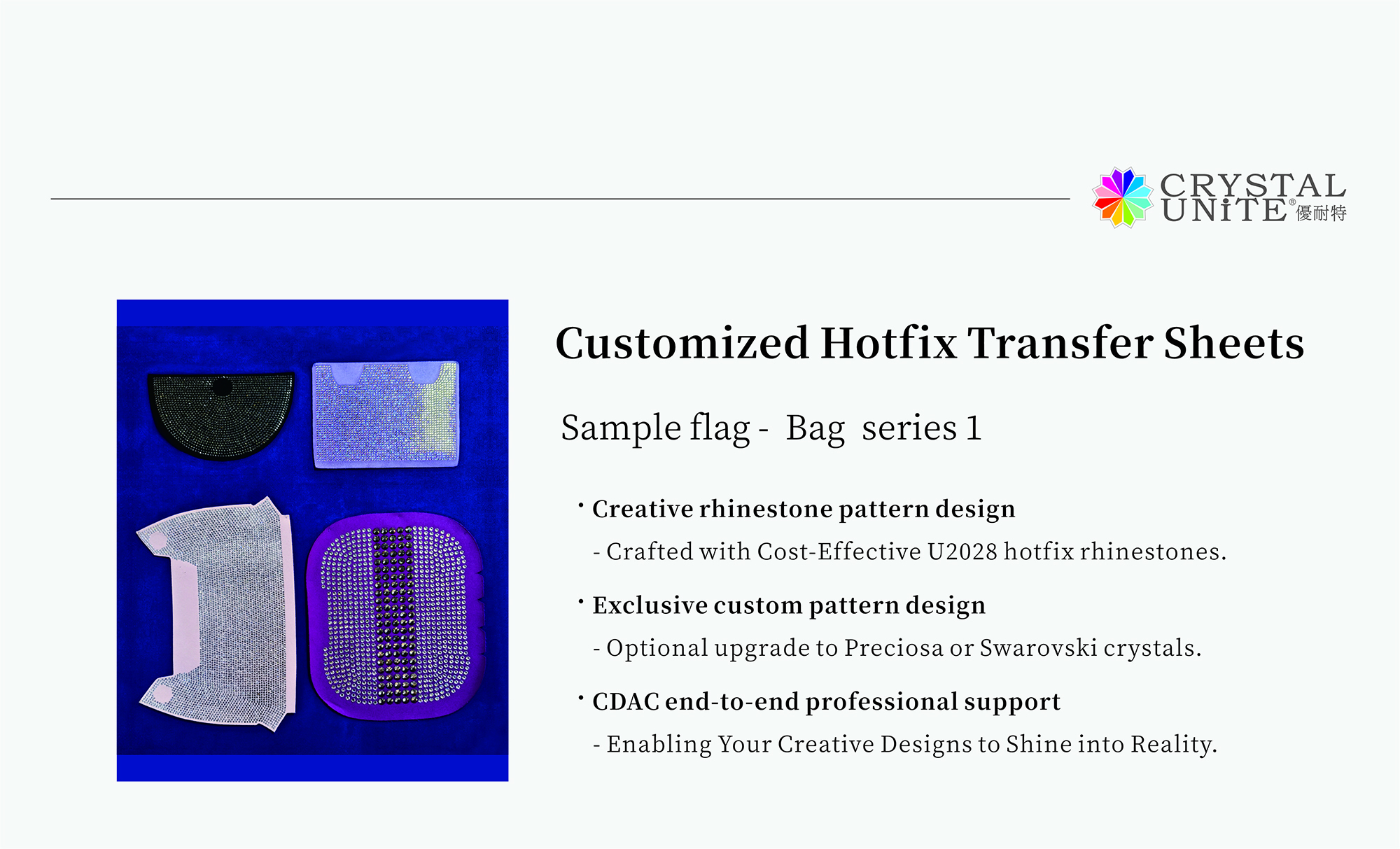 The process of assembling loose hotfix rhinestones into creative patterns and heat-transferring them onto fabrics may present technical hurdles. Our dedicated R&D and manufacturing team – the Crystal Design & Application Center (CDAC) delivers end-to-end solutions spanning design, material allocation, prototyping to mass production. We have successfully served multiple international high-end fashion brands.