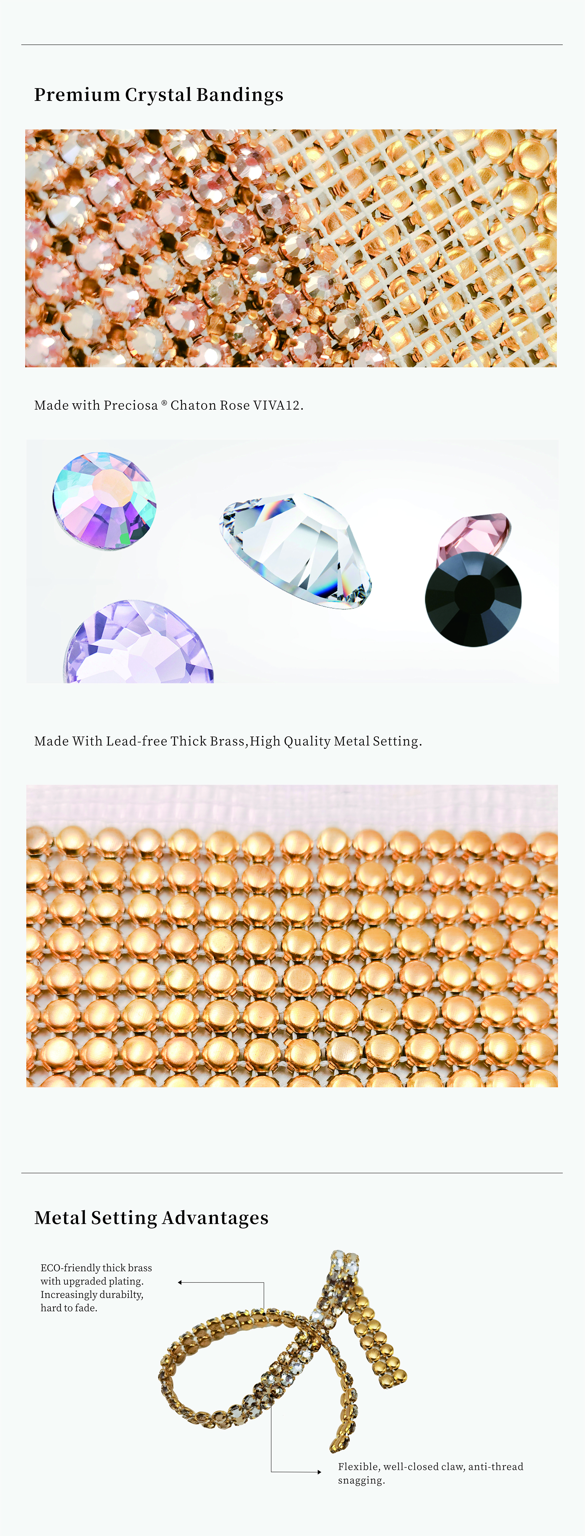 Premium Crystal Bandings: Sparkling Crystal Inlay | Snag-Resistant Eco Copper Claws | Sewable Mesh Border