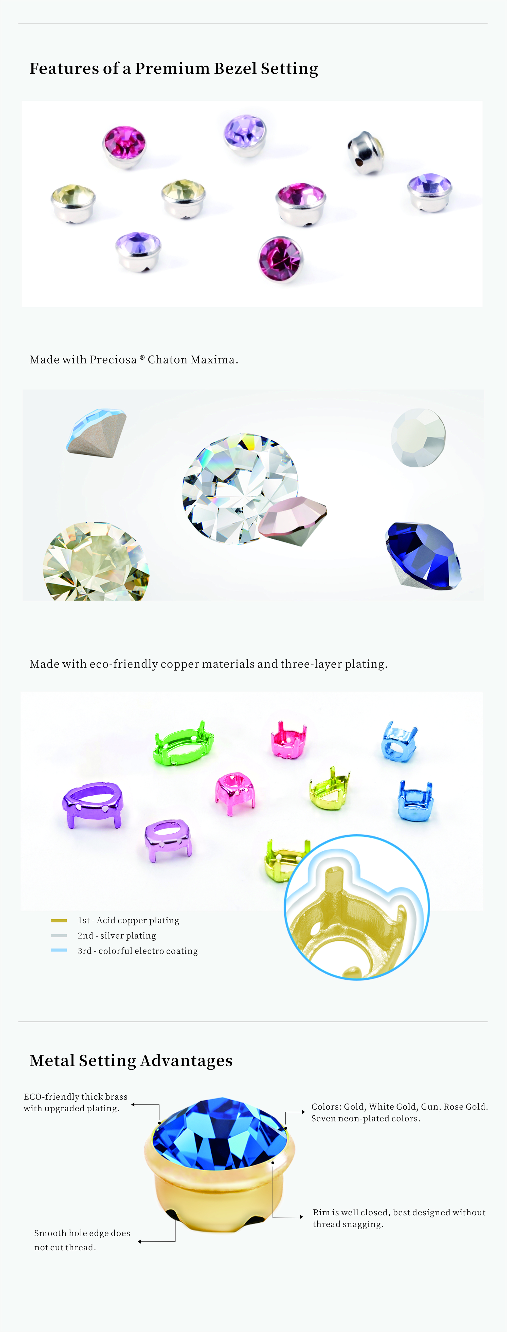 CDAC combines eco-friendly Chinese copper stamping components with premium European crystal elements to create competitively priced crystal accessory series. These end-to-end custom products, including Cup Chains, Montees, Rivets, Bandings, Rings, Buttons, etc. empower designers to unlock creativity from bold statement pieces to intricate embellishment styles. -