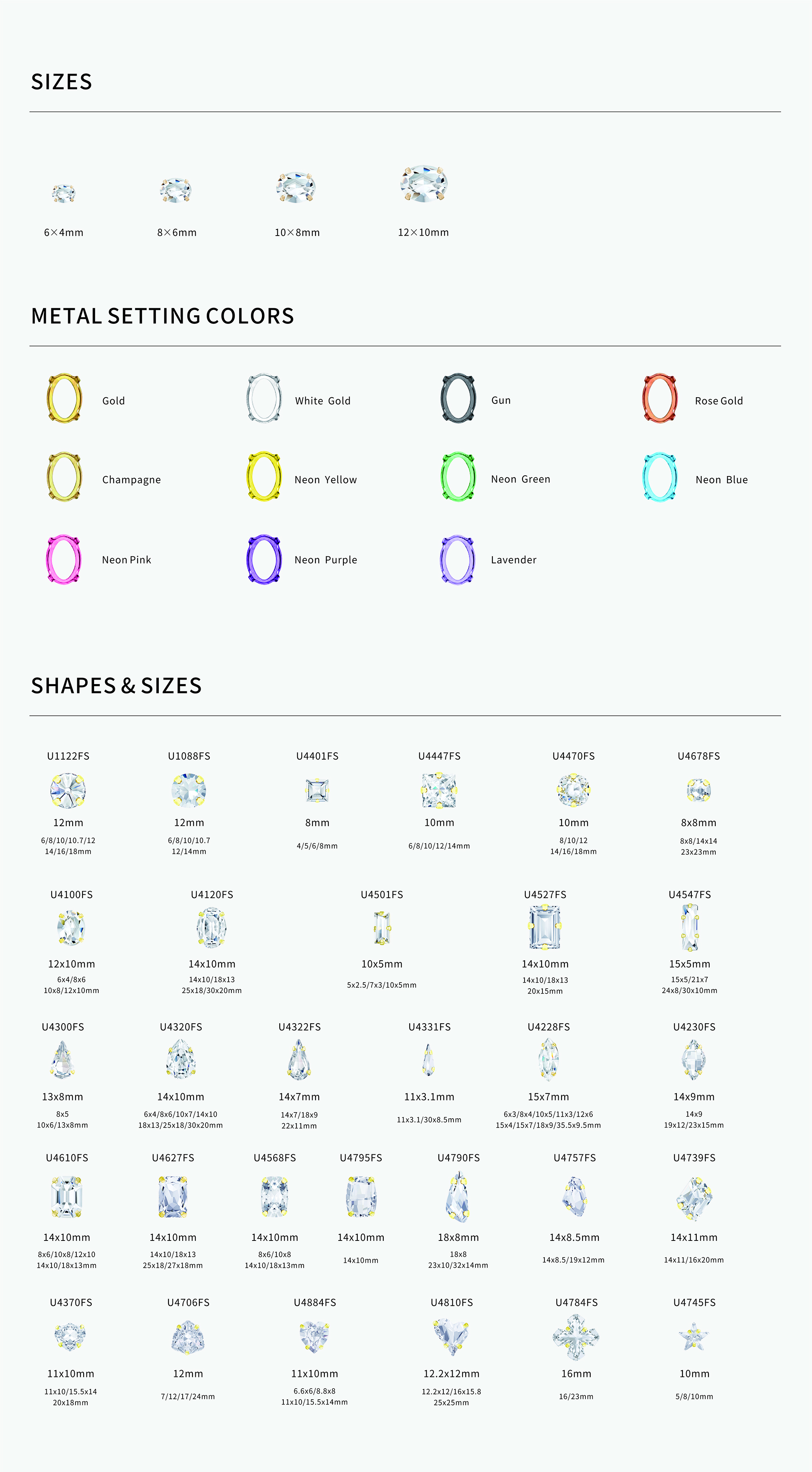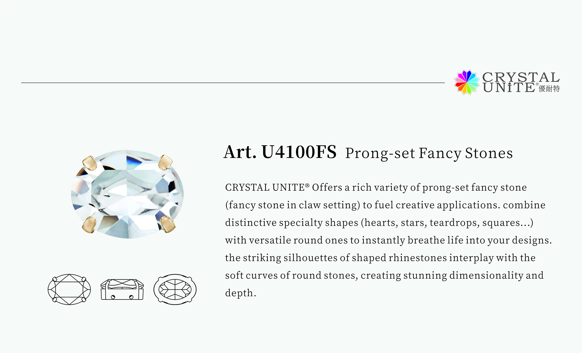 Brand Name Crystal Unite Article No. U4100FS Origin Place China Size 4 sizes in total Type Sew-on Montees Style Point back Shape Oval Technics Hand Sewing,