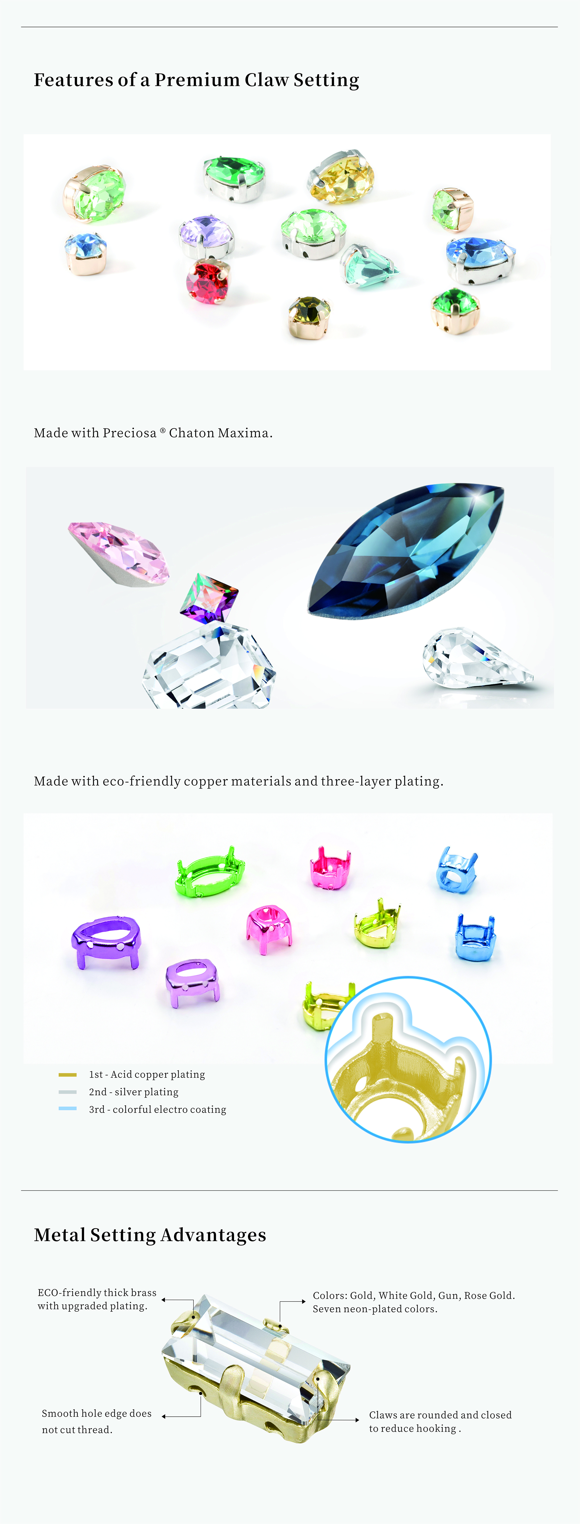 Crafted in China with naturally superior value, reducing overall costs for crystal prong settings.Manufacturing Edge: