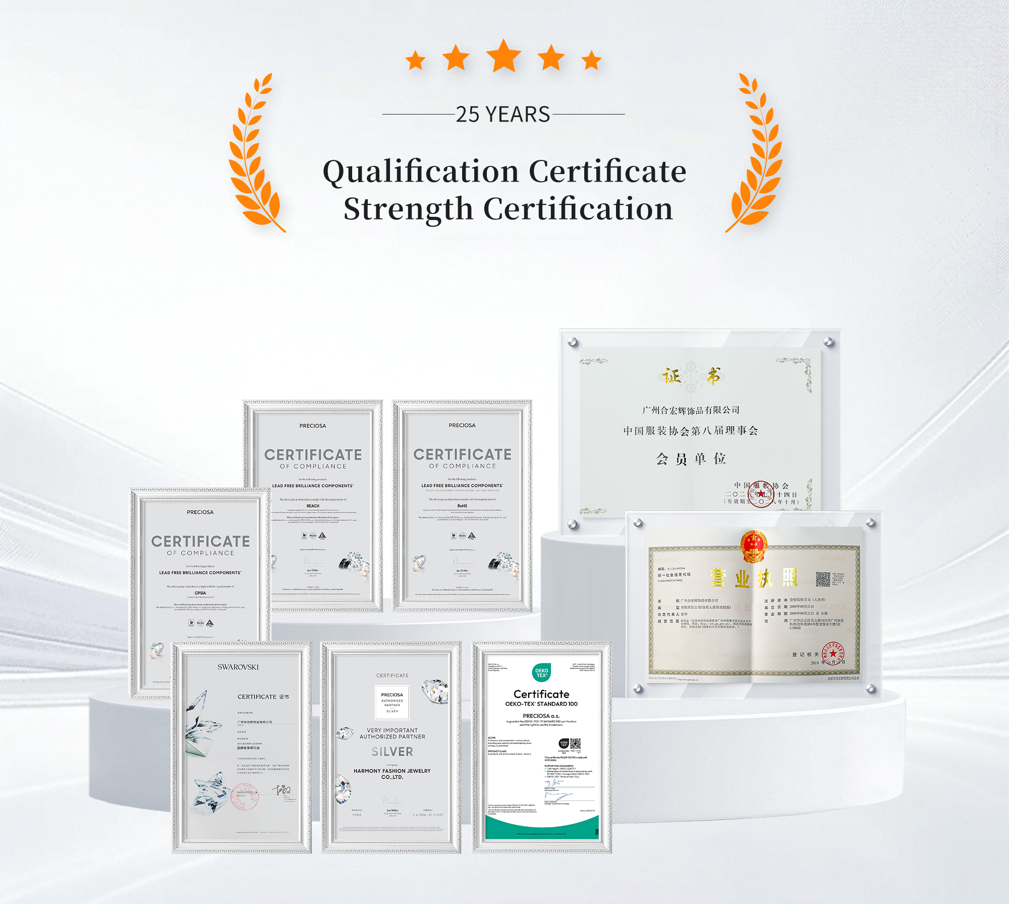 Direct relationships with top manufacturers like Swarovski and Preciosa, ensuring authenticity and competitive pricing. Diversified supply chain for reliability and access to global crystal trends.