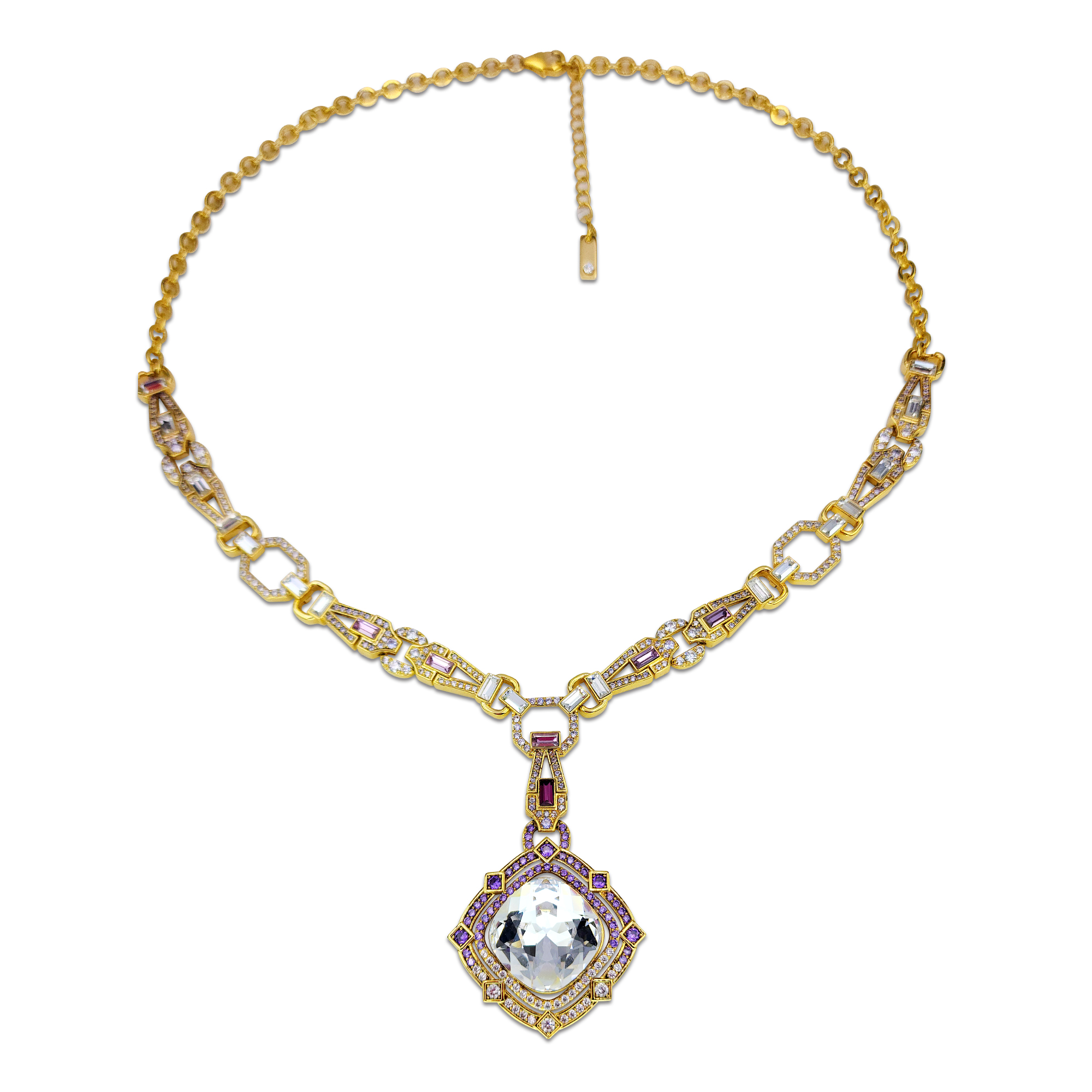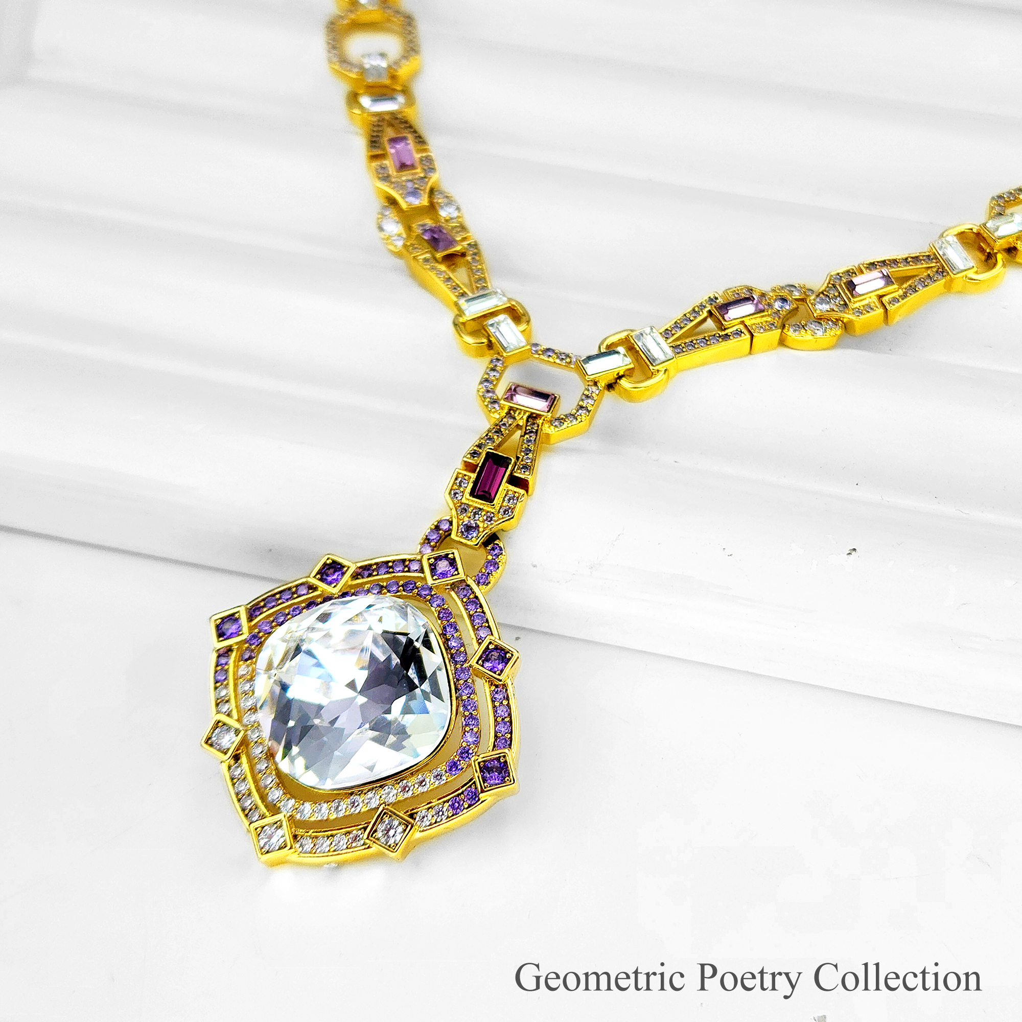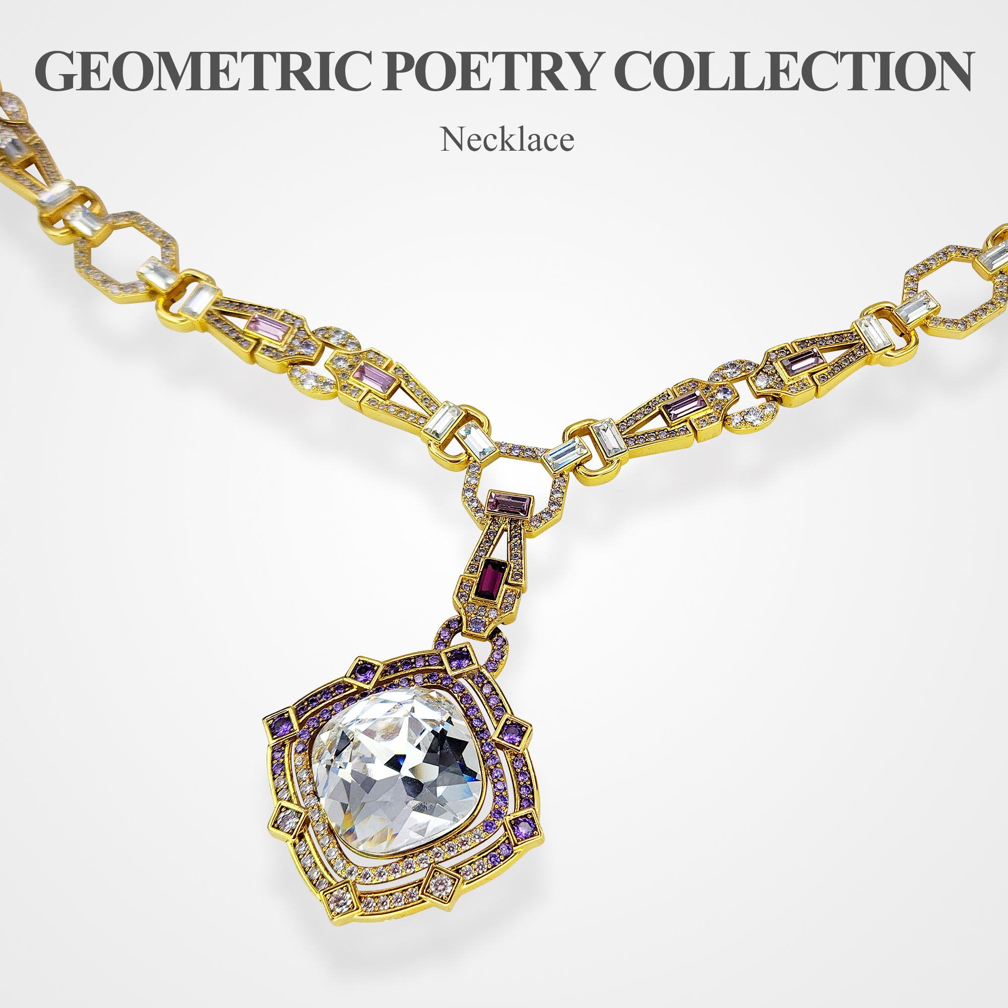 Geometric Poetry Necklace Item Code PS.NCM090 Material Brass Crystal Austrian artificial crystals Plating 18K Gold Techniques Claw setting, adhesive bonding Chain Length 50 cm Extender 5 cm