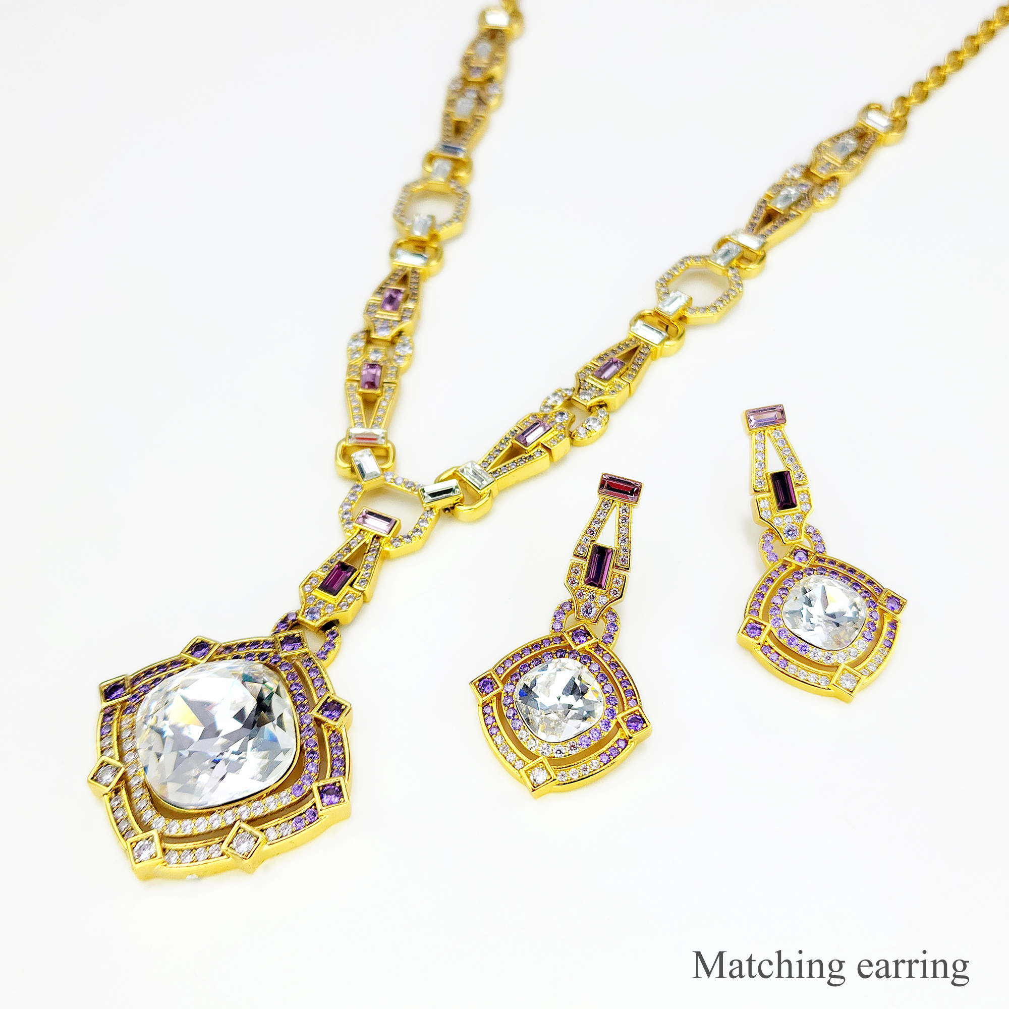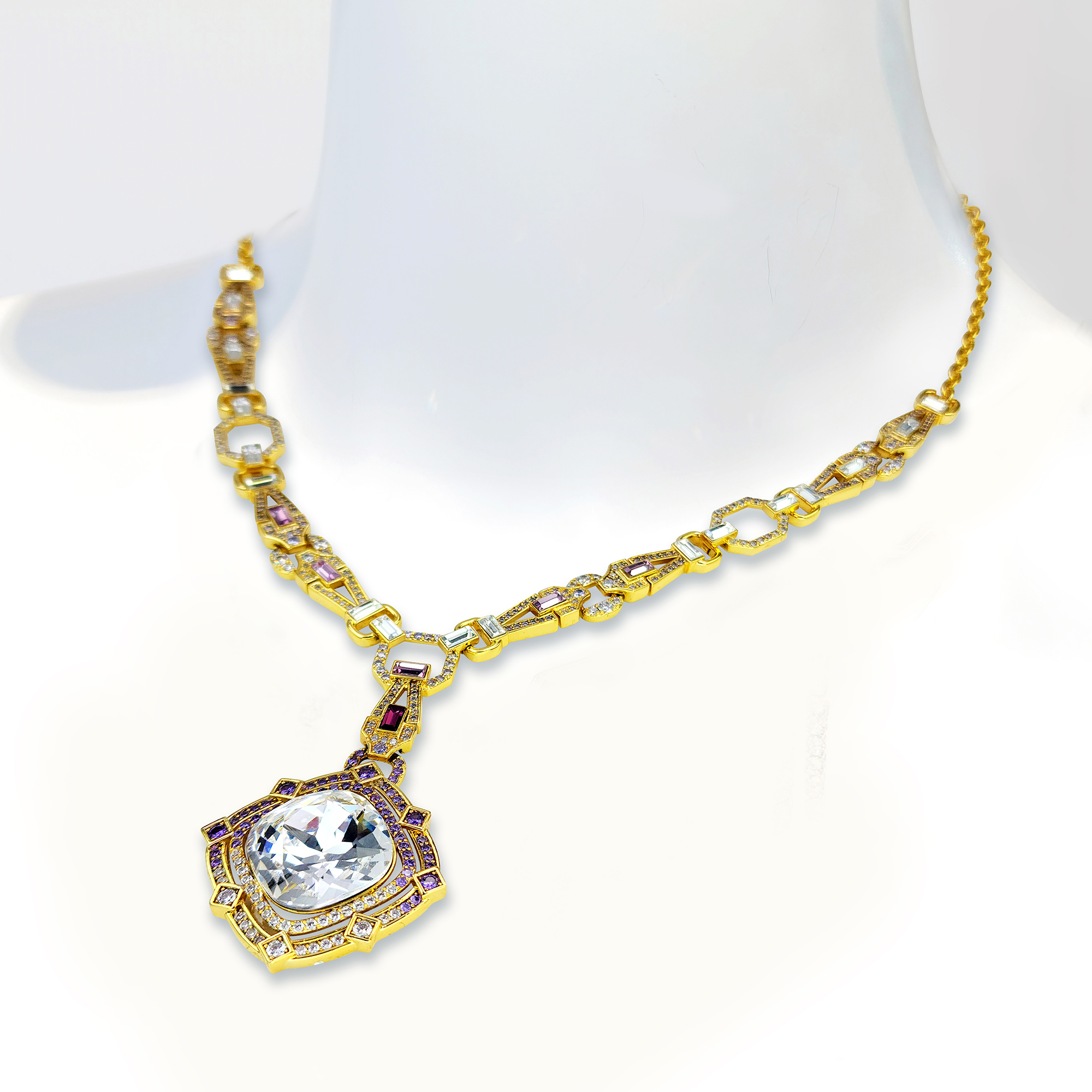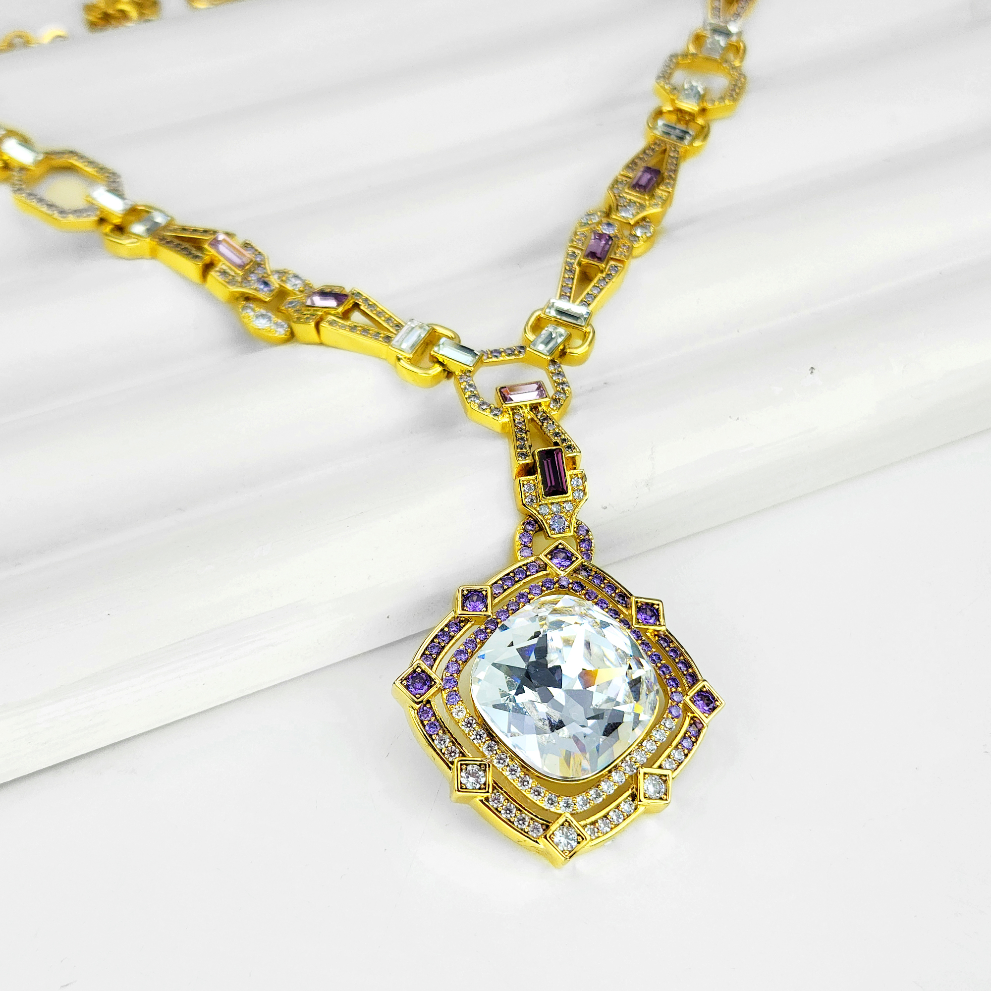 Geometric Poetry Necklace Item Code PS.NCM090 Material Brass Crystal Austrian artificial crystals Plating 18K Gold Techniques Claw setting, adhesive bonding Chain Length 50 cm Extender 5 cm