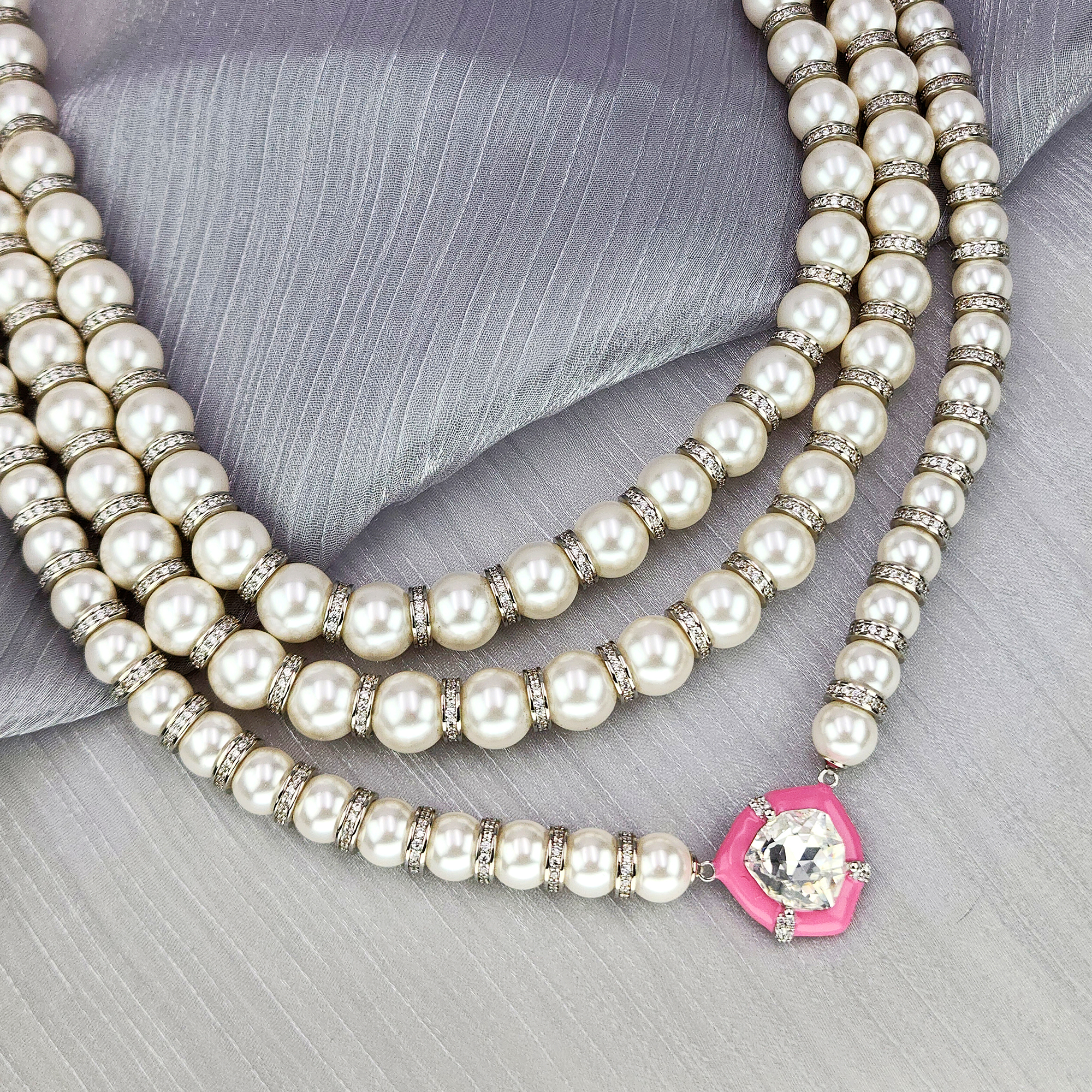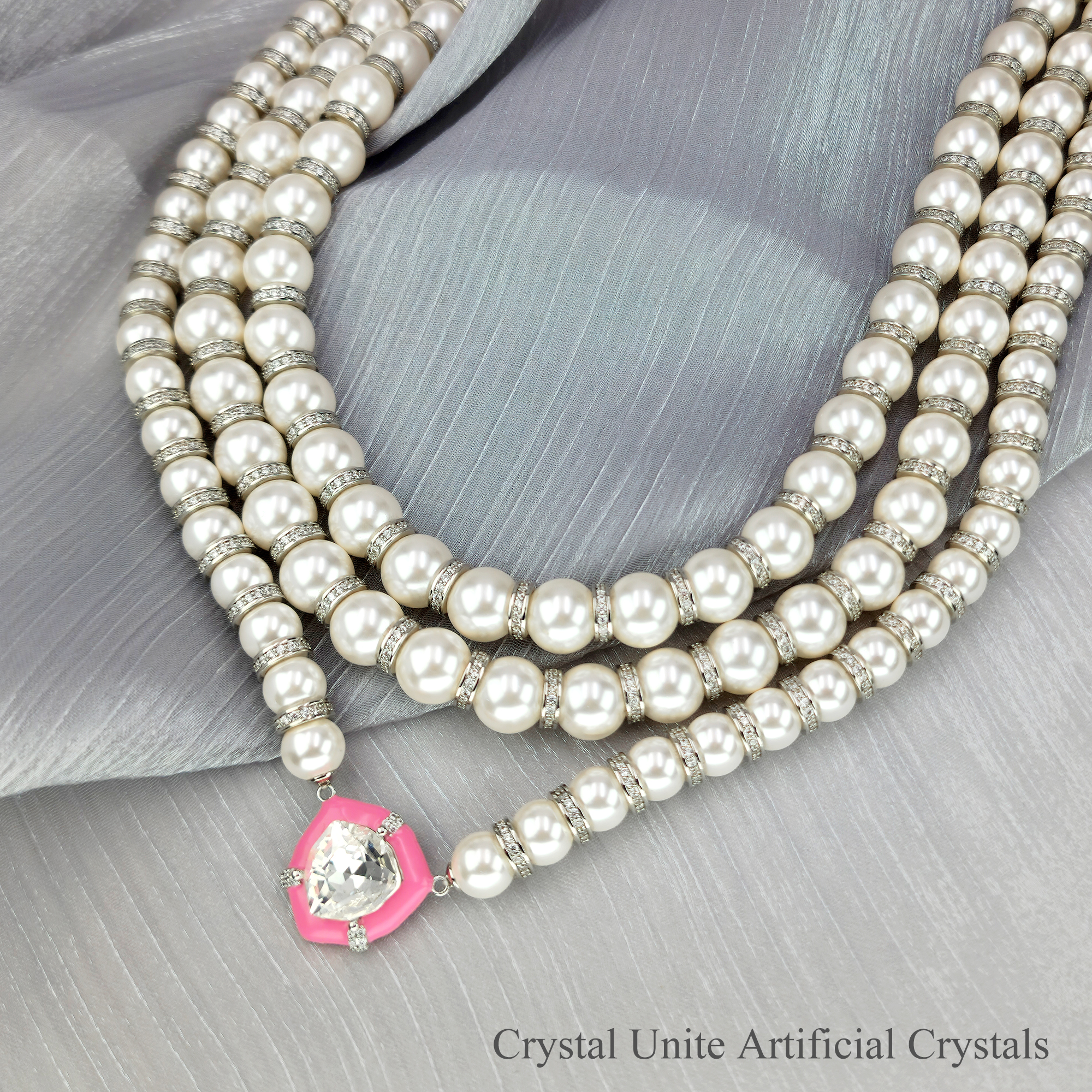 Hepburn Silhouette Collection Necklace Item Code PS.NCM078 Material Brass Crystal Crystal Unite artificial crystals Plating White Gold Techniques Claw-setting, adhesive bonding & beading Chain Length 37 cm Extender 7 cm