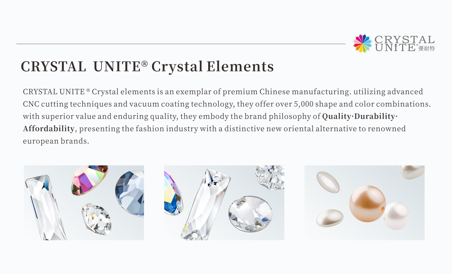 CDAC combines eco-friendly Chinese copper stamping components with premium European crystal elements to create competitively priced crystal accessory series. These end-to-end custom products, including Cup Chains, Montees, Rivets, Bandings, Rings, Buttons, etc. empower designers to unlock creativity from bold statement pieces to intricate embellishment styles